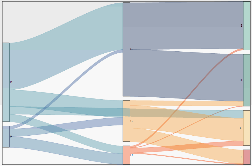 は、ノード間のフローの大きさを曲線リンクとして視覚化し、リンクの太さを値に比例させることで、プロセス内の分布や関係性を効果的に表現します。