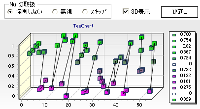 | ● | リボン・横リボン Nullの取扱 リボンと横リボンはnullポイントをサポートします。 他の系列型のように、幾つかのnullポイントを描画するモードがサポートされています。